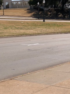 An image that has stayed with me for years, though, was outside on the street. There are two x’s that mark where Kennedy’s car was when he was hit by those two infamous blasts.